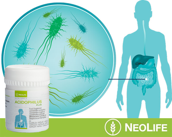 ar žinojote, kad dėl nusilpusio imuniteto ir padažnėjusių ligų gali būti kalta pakitusi žarnyno bakterijų pusiausvyra? Sveiko žmogaus organizme gerosios bakterijos sudaro 85 %, o blogosios 15 %, tačiau, kai blogųjų bakterijų ima daugėti – išsivysto disbiozė. Dėl jos žmogus gali susirgti įvairiomis ligomis, nusilpsta jo imunitetas. Jei pastaruoju metu pradėjote dažniau sirgti, greitai pavargstate, vartojote antibiotikus, vertėtų papildyti savo mitybą gerosiomis bakterijomis. Vos vienoje Neolife „Acidophilus Plus“ kapsulėje yra net penki milijardai penkių skirtingų rūšių „gyvų” mikroorganizmų. Tai prilygsta net dešimčiai jogurto porcijų! „Gel-Gard” apsaugos sistema garantuoja bakterijų patekimą į žarnyną, apsaugodama jas nuo agresyvios skrandžio rūgšties. Taip užtikrinama, jog į žarnyną pateks maksimalus „gyvų” bakterijų skaičius.