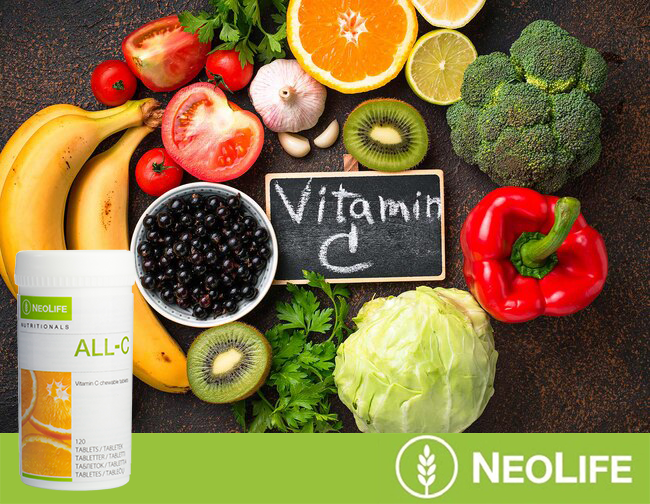 b1) vitaminas C. Jis yra jautrus karščiui, šviesai, drėgmei, reaguoja su deguonimi, o ruošiant maistą yra prarandama apie 40% šio vitamino. Papildę savo racioną Neolife “All C”, galėsite būti tikri, jog jūsų mityboje tikrai netrūksta vitamino C. Tai puikaus apelsinų skonio kramtomosios tabletės, kurios patinka visiems! Galimas ir Neolife „Sustained Release Vitamin C“, kuris sukurtas tam, kad patenkintų Jūsų individualius organizmo poreikius. Pasitelkiant palaipsnio išskyrimo metodą, į organizmą nuolat kas 6-8 val. išskiriamas tam tikras vitamino C kiekis. Sudėtyje yra malpigijų vaisių ir erškėtuogių. Malpigijos (vaisiai, panašūs i vyšnias) ir erškėtuogės (kieti erškėčių krūmų vaisiai, priklauso erškėtinių šeimos augalams) yra vieni iš turtingiausių natūralaus vitamino C šaltinių. Vitaminas C yra toks, koks randamas gamtoje. Vitaminas C yra stiprus antioksidantas, teigiamai veikiantis imuninę sistemą, apsaugantis širdį ir kraujagysles, palaikantis sveiką odos išvaizdą. Taip pat vitaminas C: malšina uždegimus, stiprina imunitetą, mažina širdies ligų riziką, skatina kolageno gamybą ir lėtina senėjimo procesus, padeda sumažinti streso lygį, padeda organizmui įsisavinti mineralus, tokius kaip geležis, prisideda prie kūno ištvermės ir fizinės formos palaikymo.
